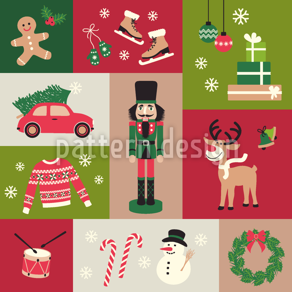 | Descrizione | Icone natalizie tradizionali retrò in blocchi di colore colorati. | ||