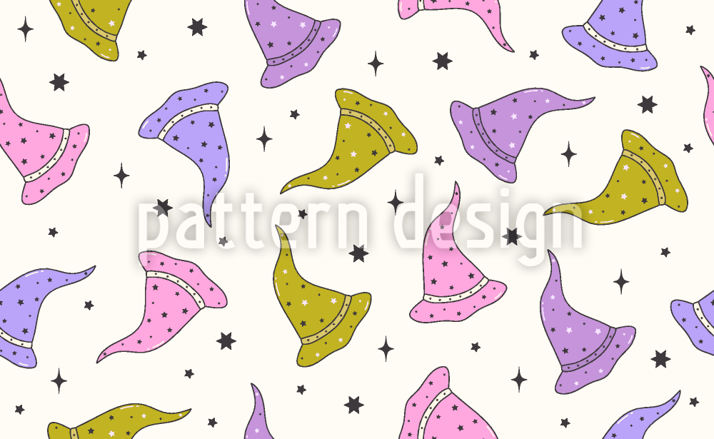 | Descrizione | Motivo retrò y2k fantasy con cappello magico e scintillii. | ||