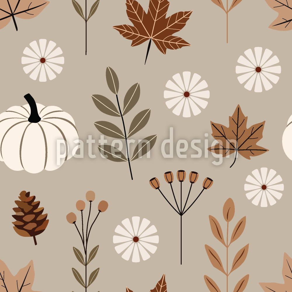 | Descrizione | Motivo di ispirazione autunnale con zucche, foglie, pigne e fiori in tenui toni della terra. | ||