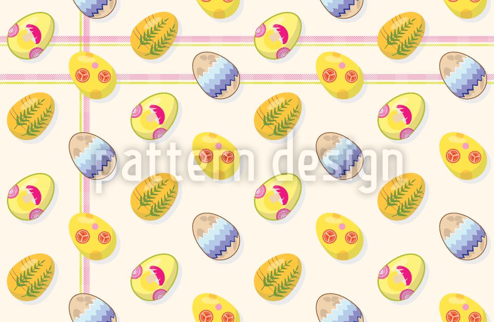 | Descrizione | Motivo pasquale con uova di Pasqua con prodotti per la colazione impressi su di esse, su una tovaglia. | ||