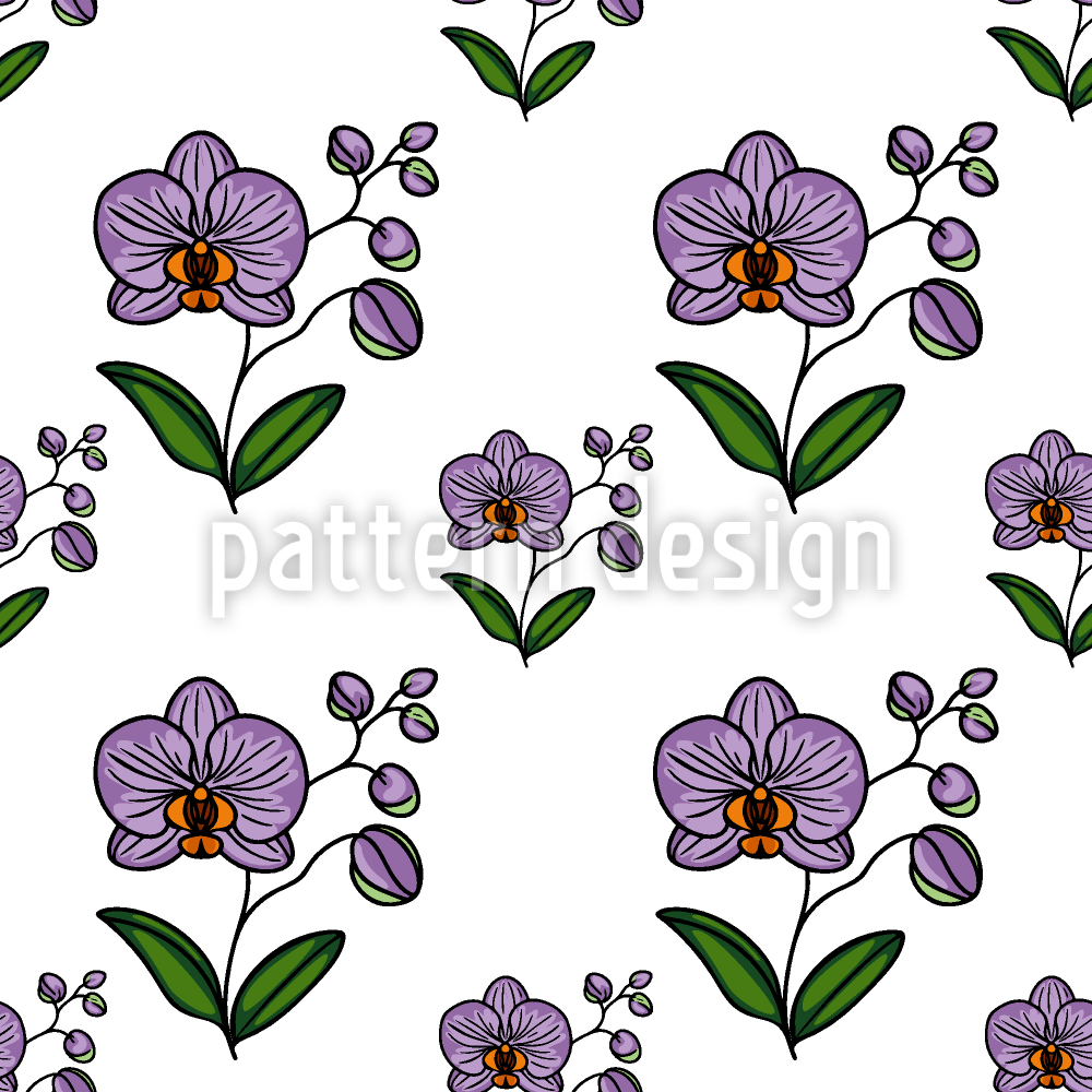 | Descrizione | Modello senza cuciture con orchidee ametiste disegnate a mano con foglie e boccioli. | ||