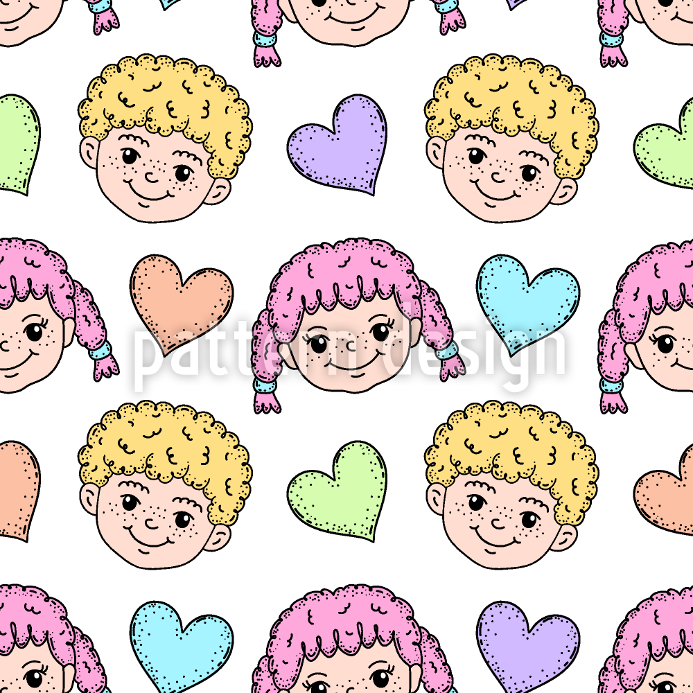 | Descrizione | Motivo a fumetti con volti e cuori di bambini. | ||
