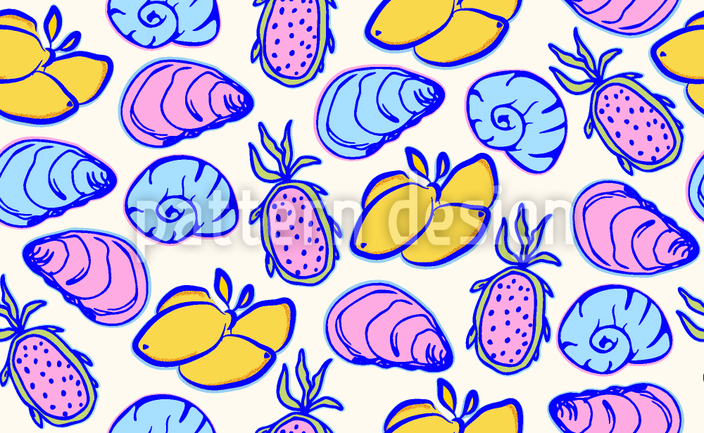 | Descrizione | Motivo disegnato a mano con limoni, conchiglie e frutti di drago in stile penna a sfera. | ||