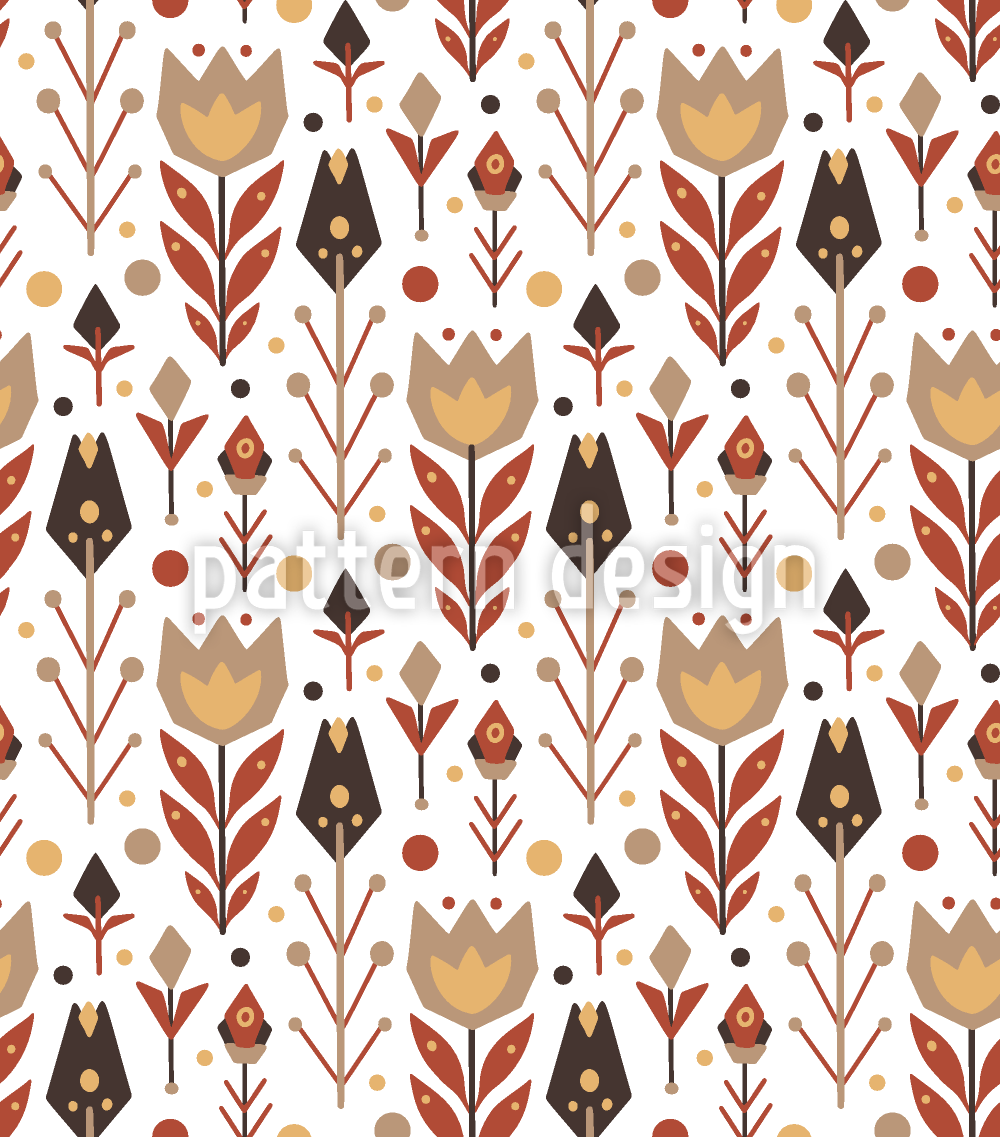 | Descrizione | Motivo senza cuciture di ispirazione tribale di tulipani e rami stilizzati con foglie e punti. | ||