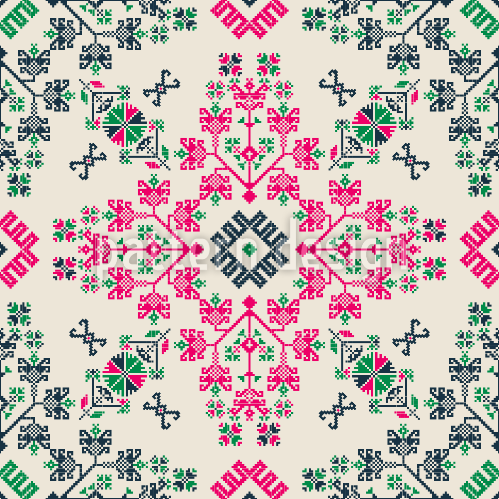 | Descrizione | Motivo tradizionale ispirato ai simboli del ricamo messicano Teenek Huastec. | ||