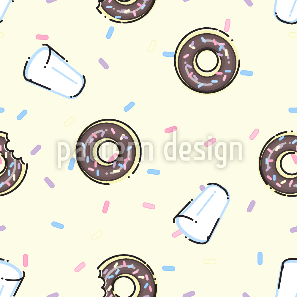 Simpatiche ciambelle cosparse e latte disegni vettoriali senza cuciture
