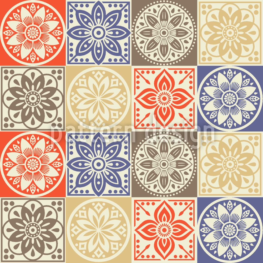| Descrizione | Varietà di fiori stilizzati monocromatici ispirati alle piastrelle per pavimenti in terracotta mediterranea. | ||