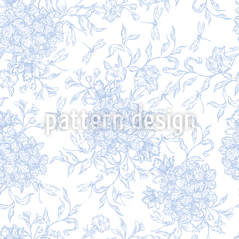 Ortensia Toile De Jouy disegni vettoriali senza cuciture