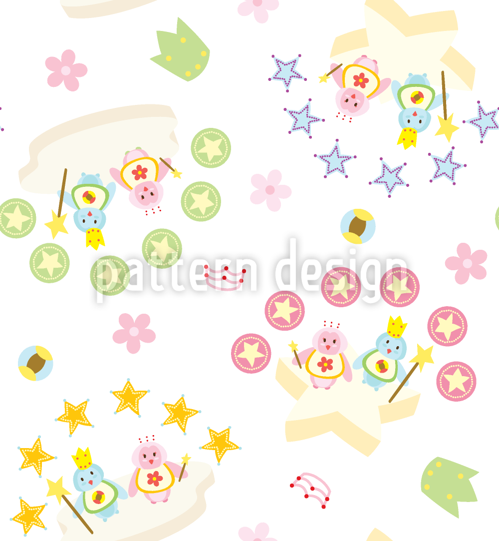 | Descrizione | Pinguini blu e rosa con bacchetta magica e fiori, stelle e corone dappertutto. Simpatici colori infantili su sfondo bianco. | ||