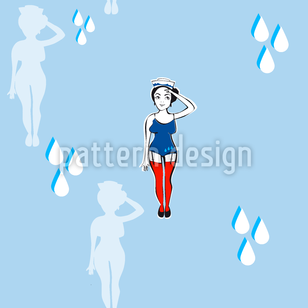 | Descrizione | Il piccolo marinaio ha dormito troppo a lungo. Quindi si è dimenticata di indossare completamente l'uniforme. Design marittimo con figura femminile, gocce d'acqua e silhouette. | ||