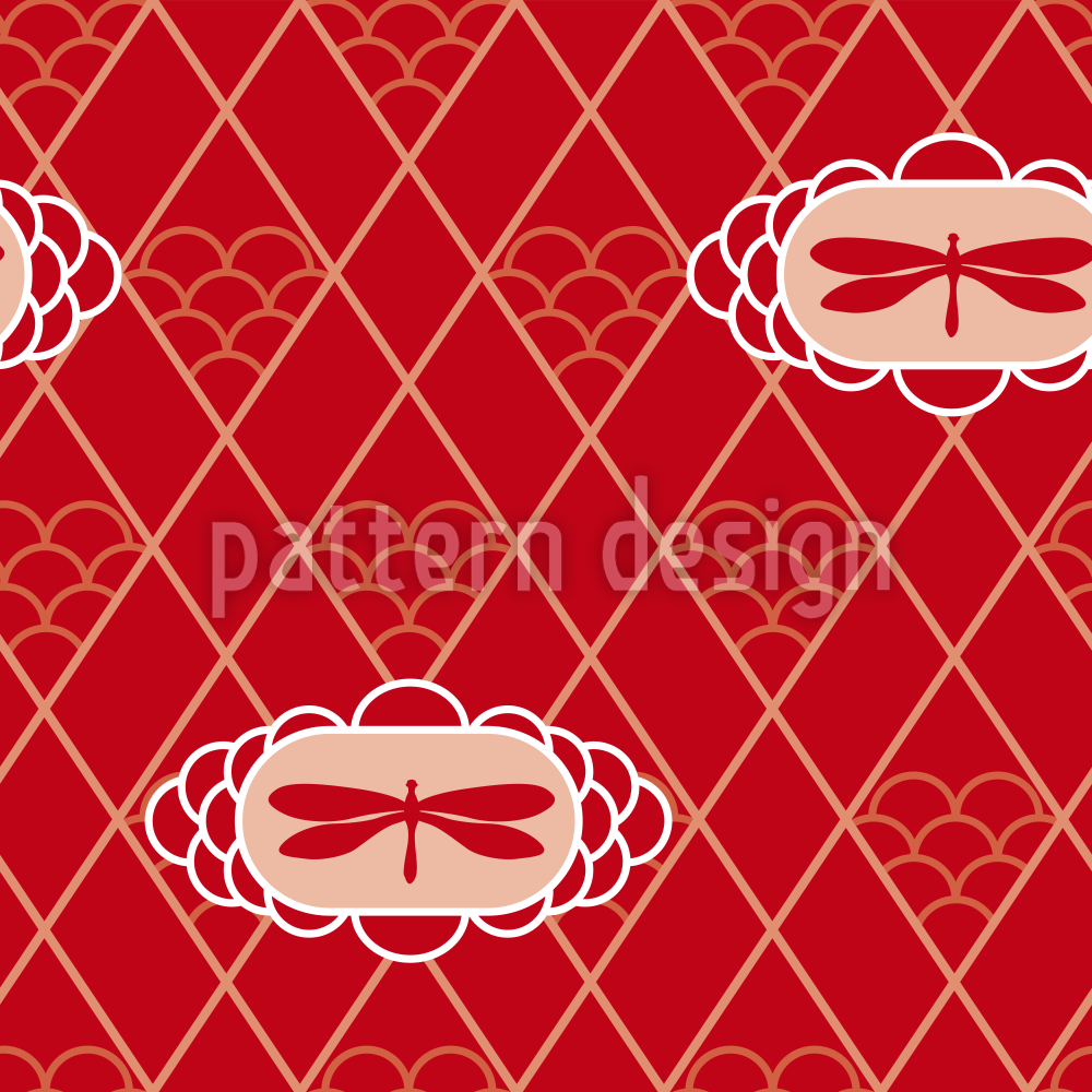 | Descrizione | Design in colore rosso con libellule su uno sfondo decente di strisce incrociate. | ||