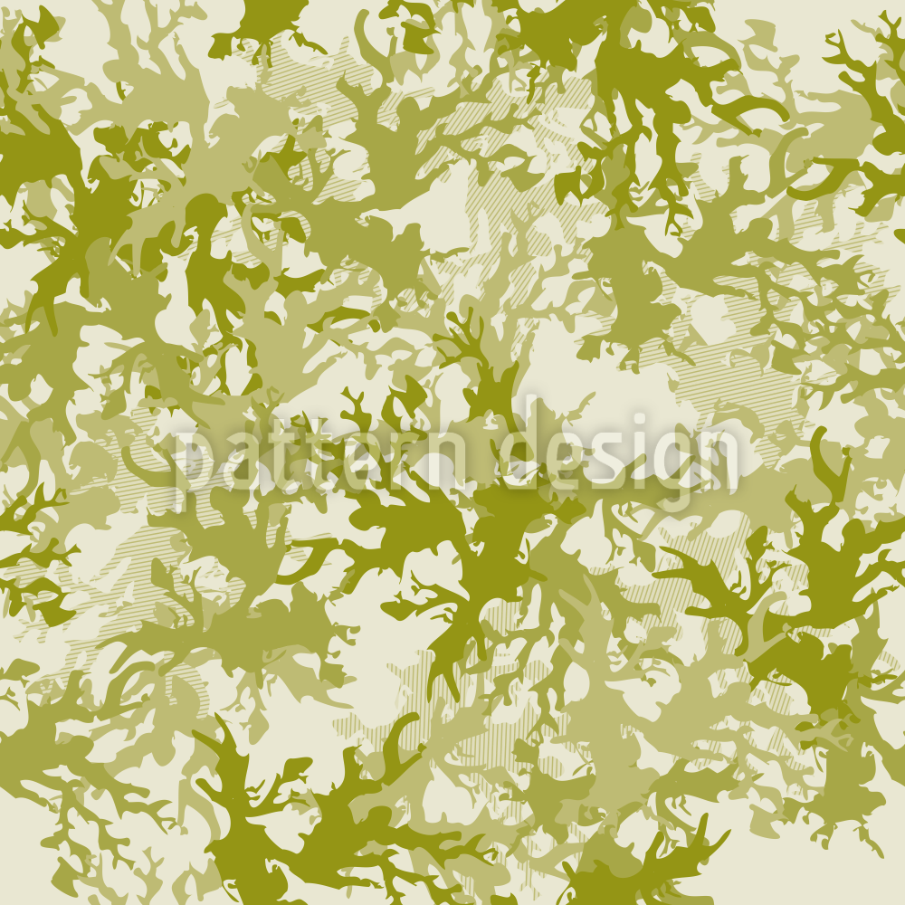 | Descrizione | Design camouflage con elementi in corallo sfrangiato in diverse tonalità di verde. | ||