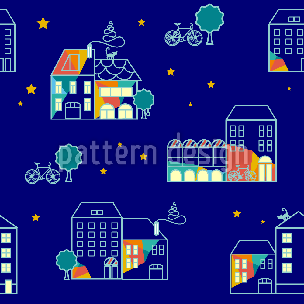 | 説明 | 家、猫、自転車、木、星のある夜のシーン。 | ||