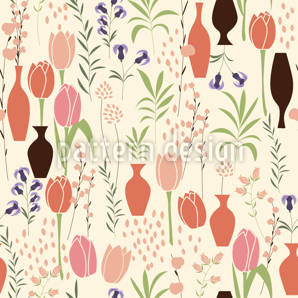 チューリップと花瓶 シームレスなベクトルパターン設計