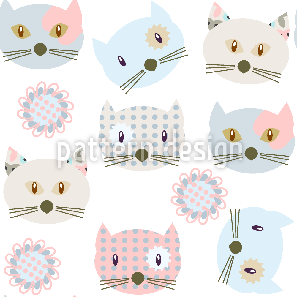 パッチワークを着た猫 シームレスなベクトルパターン設計
