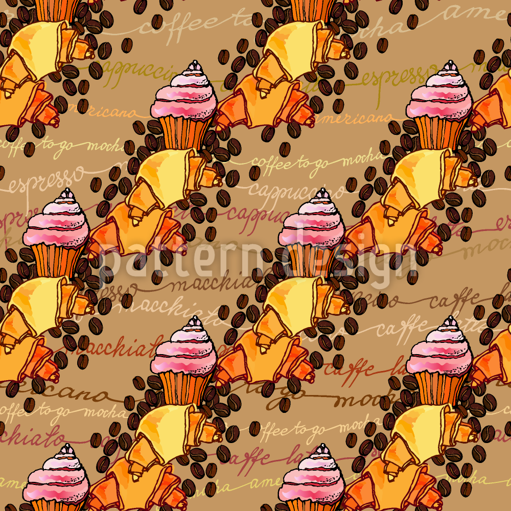 コーヒー&カップケーキ シームレスなベクトルパターン設計