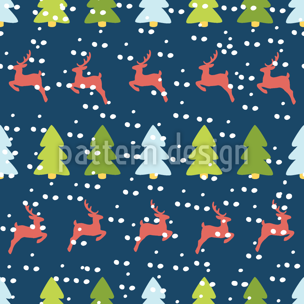 冬の森のトナカイ シームレスなベクトルパターン設計
