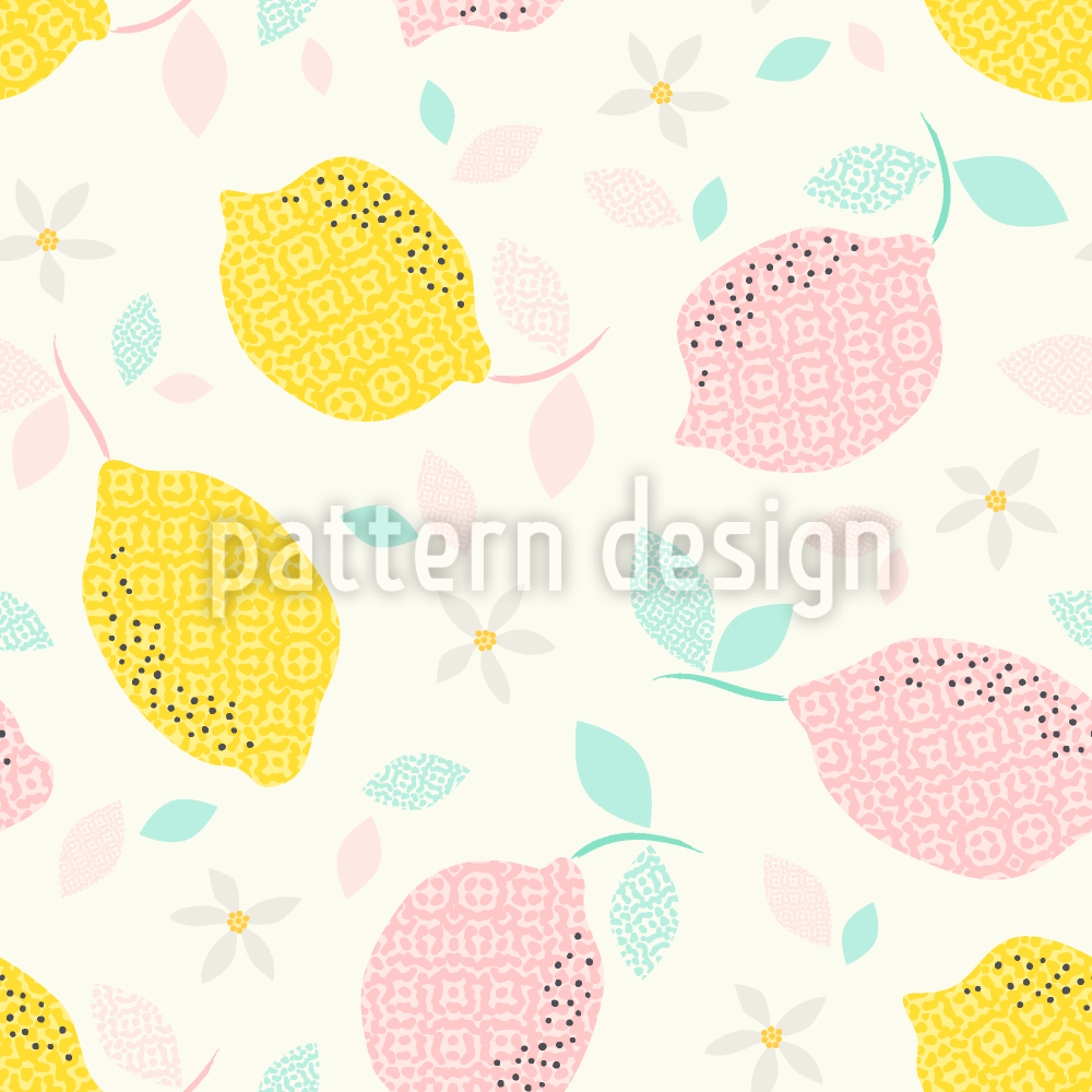 グラフィカルな柑橘類と花 シームレスなベクトルパターン設計