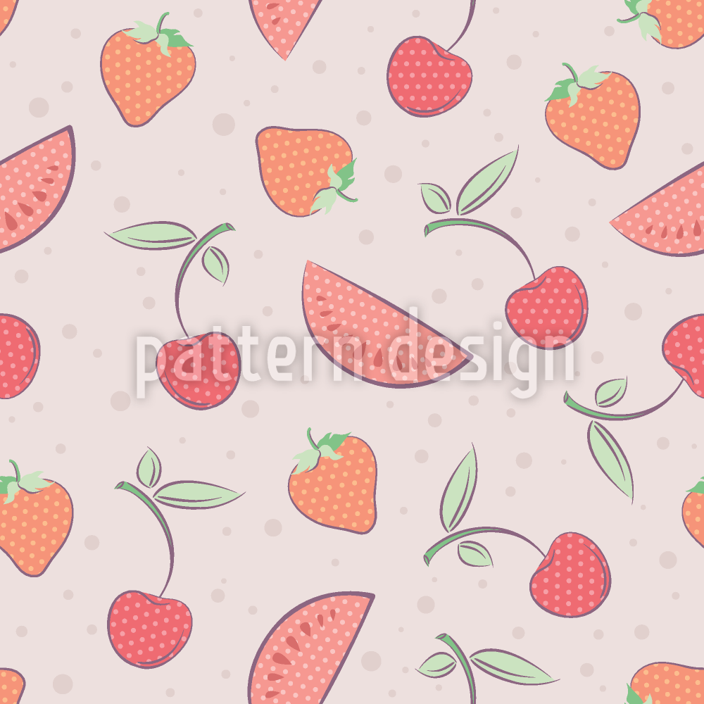 | 説明 | 水玉模様の質感を持つ、定型化されたベリー、チェリー、オレンジ。 | ||