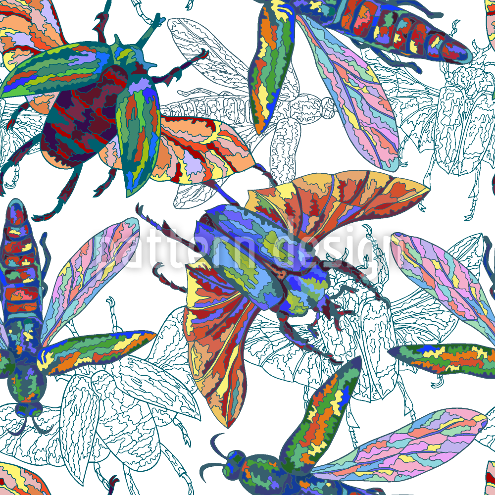| 説明 | 明るくエキゾチックなカブトムシとハエのデザイン。 | ||