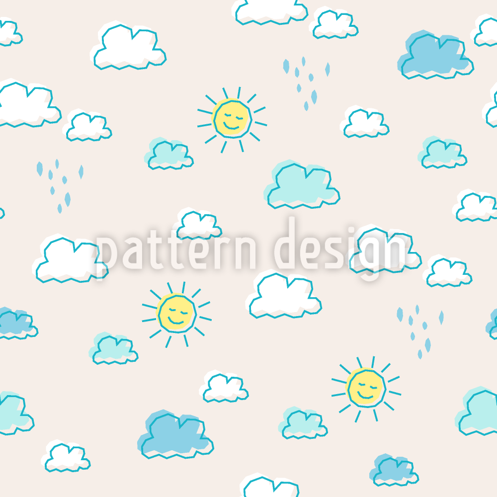太陽と雲 シームレスなベクトルパターン設計