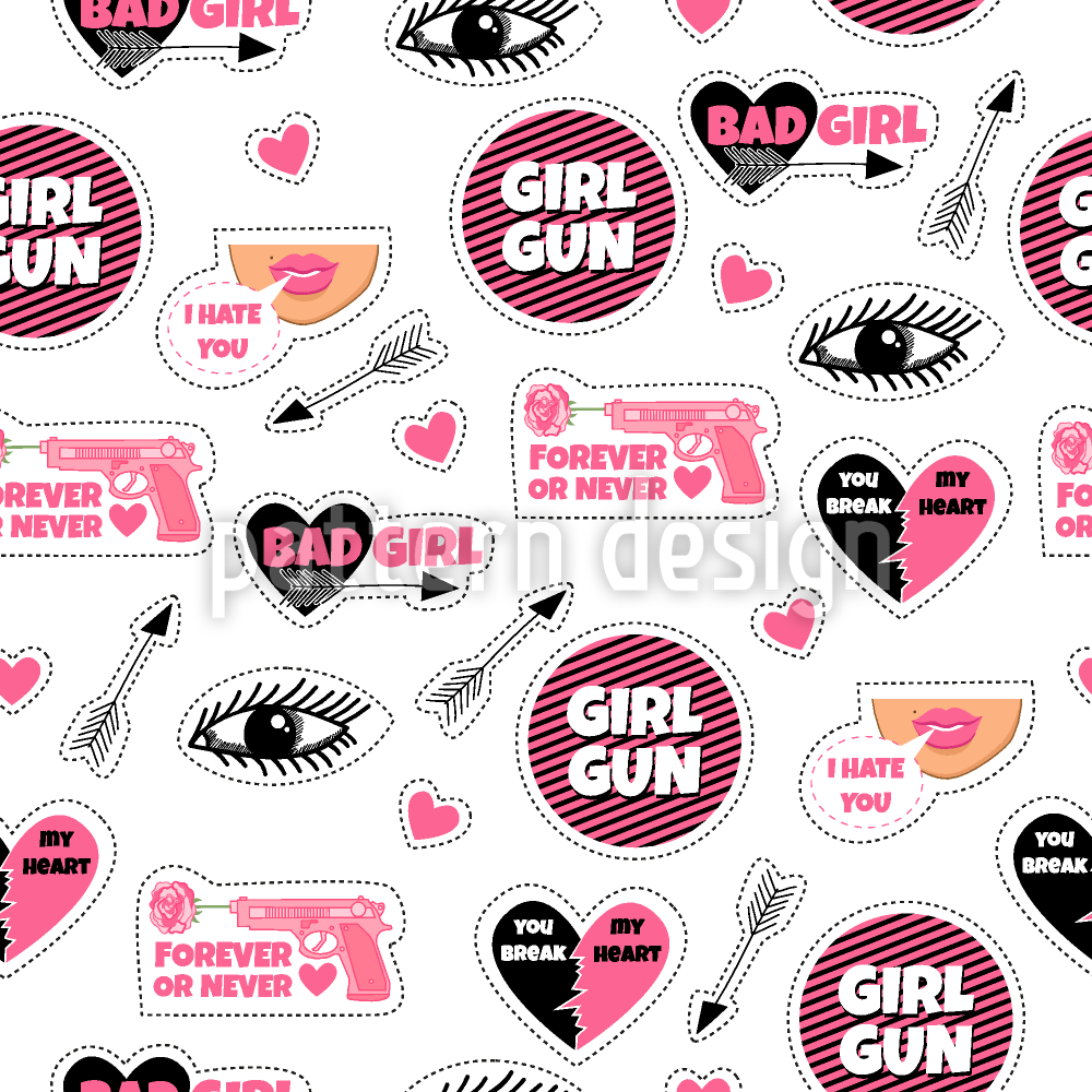 | 説明 | ガーリーなファッションステッカーとパッチのシームレスパターン。 | ||