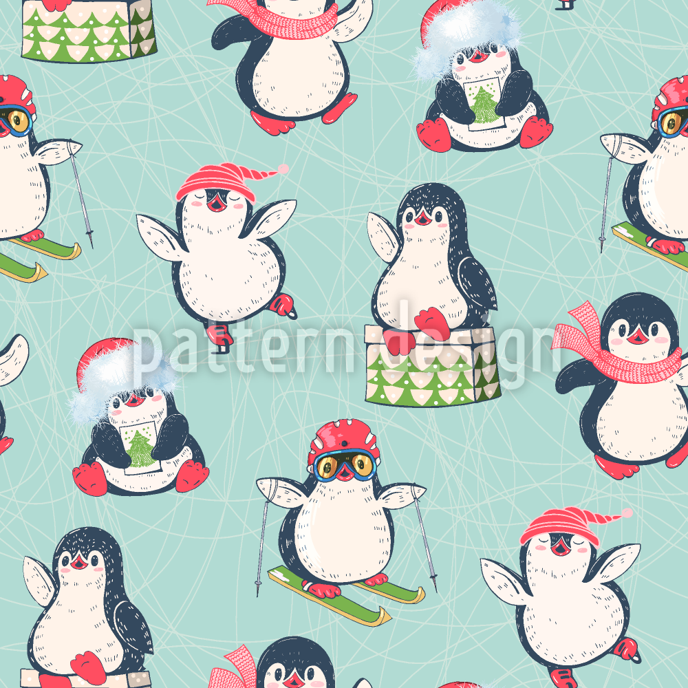 冬のペンギン シームレスなベクトルパターン設計