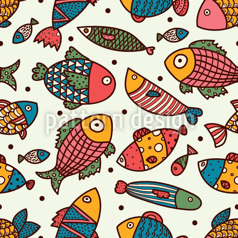 魚と水玉 シームレスなベクトルパターン設計