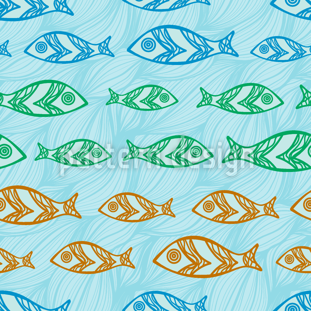 波と魚 シームレスなベクトルパターン設計