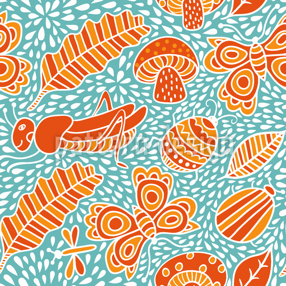 | 説明 | シームレスなパターンとして、林床をモチーフにした定型化された木版画。 | ||