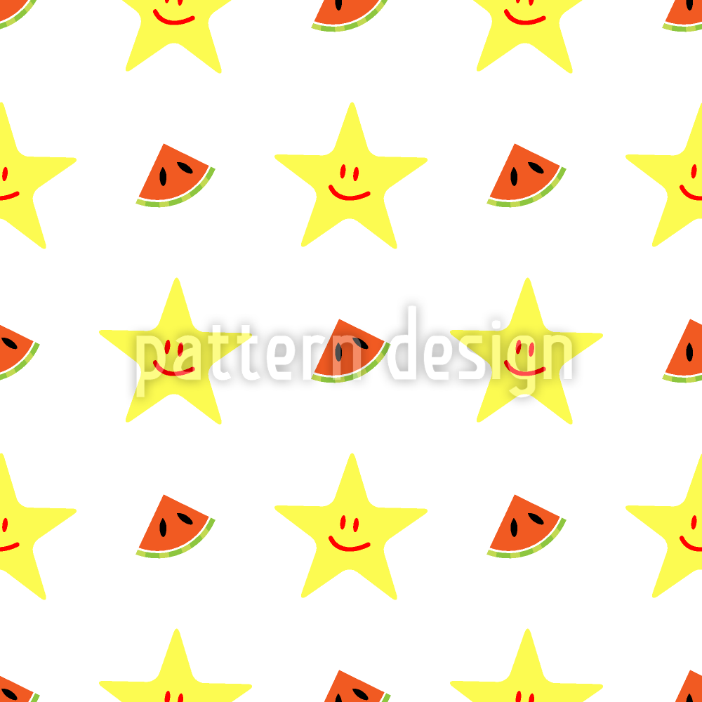 ハッピースイカと星 シームレスなベクトルパターン設計
