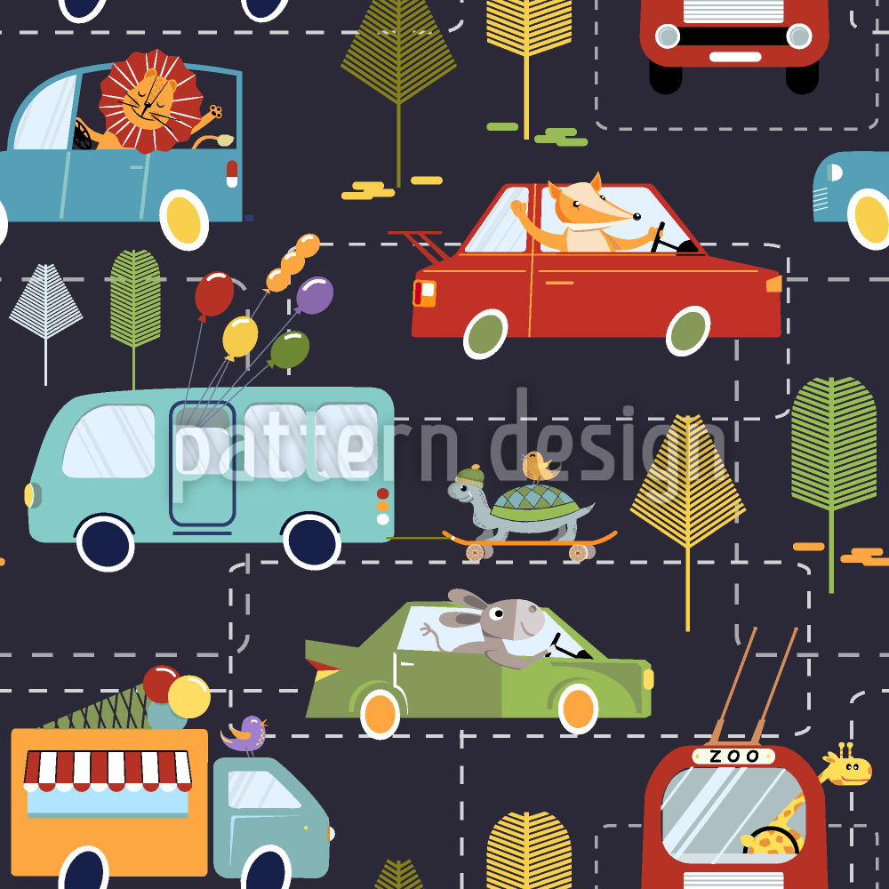 | 説明 | さまざまな種類の車両を運転するさまざまな動物のパターン。 | ||