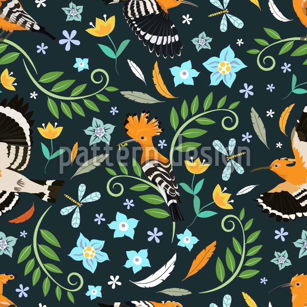| 説明 | 様々なヤツガシラ鳥、葉、花のシームレスパターン。 | ||