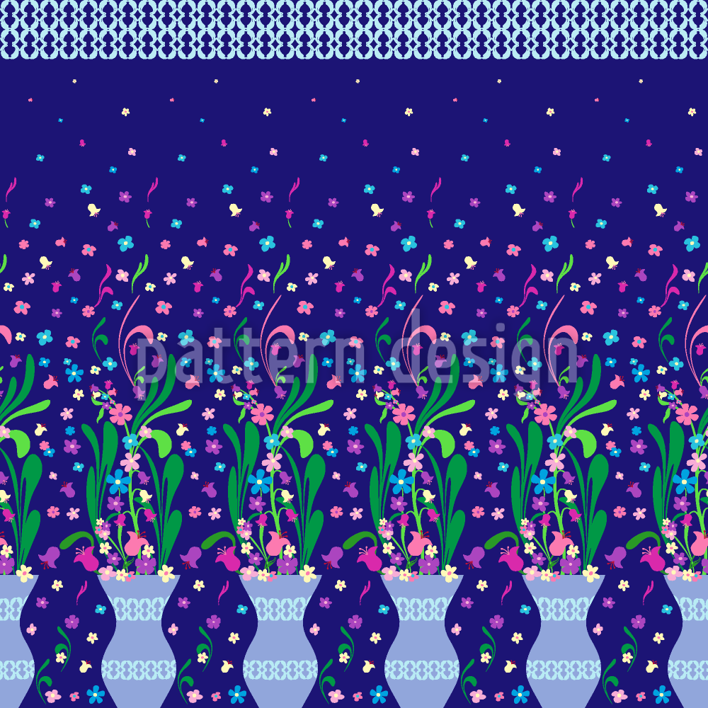 | 説明 | 花瓶に様式化された花を持つシームレスな bordure パターン。 | ||