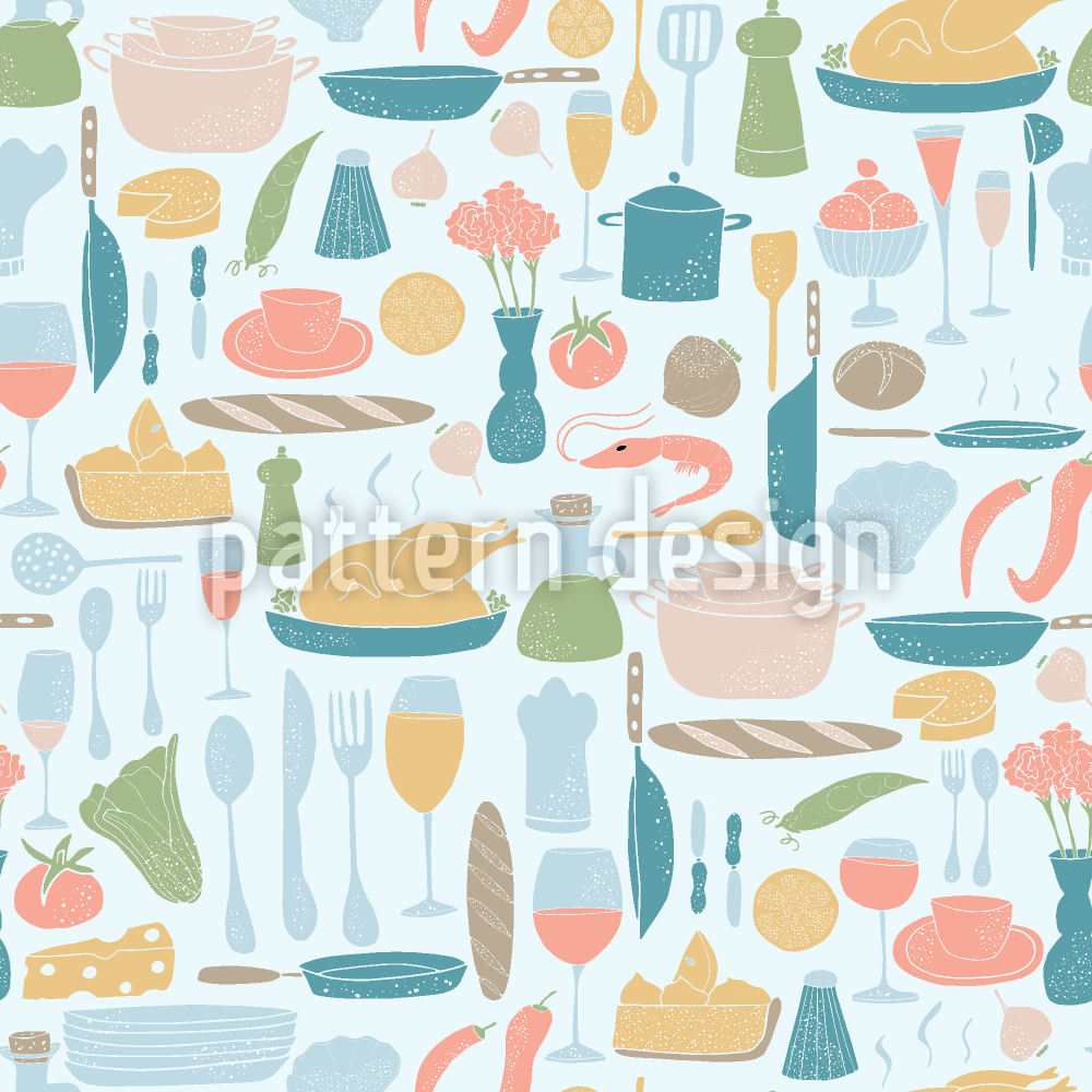 | 説明 | 食べ物、食器、カトラリー、花が散在するシームレスパターン。 | ||