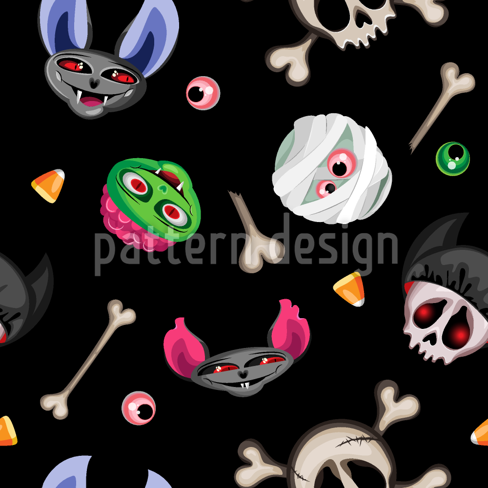 | 説明 | 不気味な頭、目、キャンディー、骨のシームレスなハロウィーンパターン。 | ||