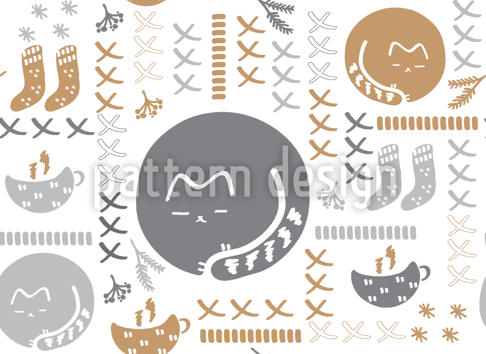 | 説明 | 猫、コーヒー、ニットソックスの居心地の良い冬のパターン。 | ||