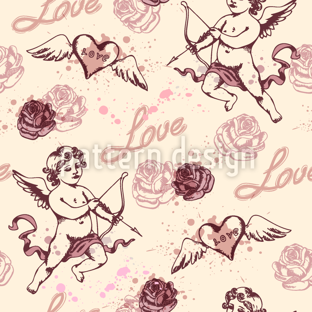 キューピッドとバラ シームレスなベクトルパターン設計