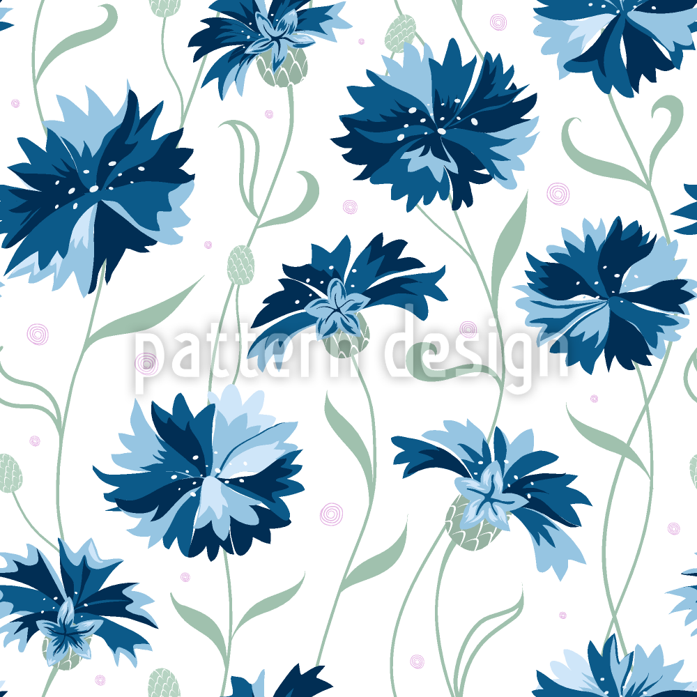 | 説明 | 白い背景に様式化された青いヤグルマギクに触発されたベクトルパターン。 | ||