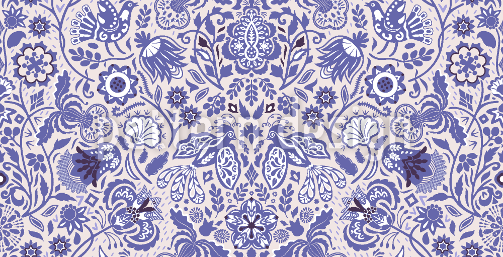 民俗花と鳥 シームレスなベクトルパターン設計