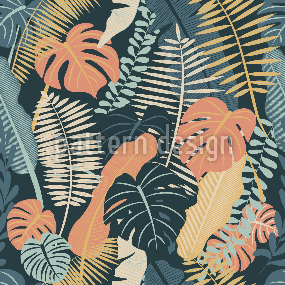 ジャングルの熱帯の葉 シームレスなベクトルパターン設計