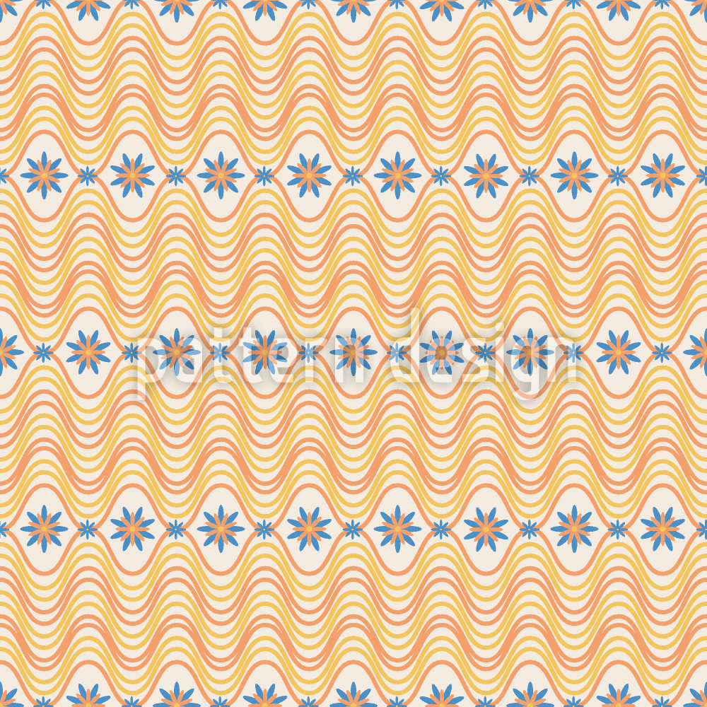 | 説明 | 花と形が描かれた波状のレトロスタイルのパターン。 | ||
