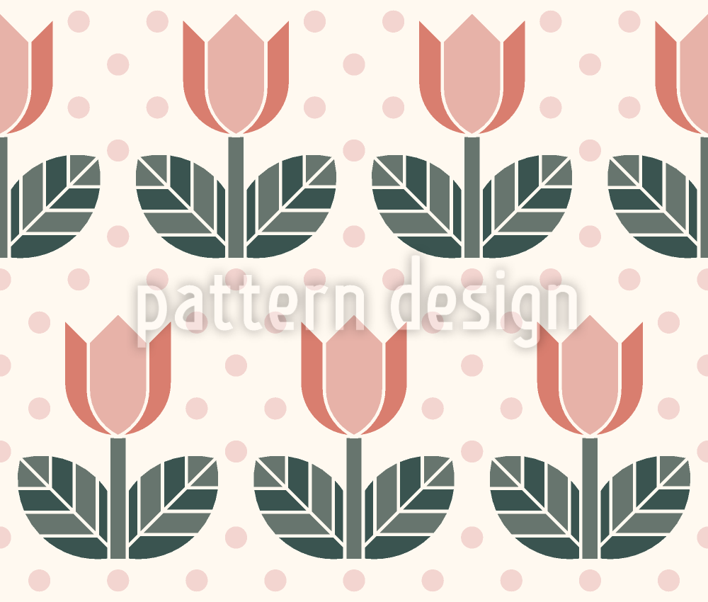 | 説明 | 葉っぱと水玉模様のチューリップが一列に並んでいます。 | ||