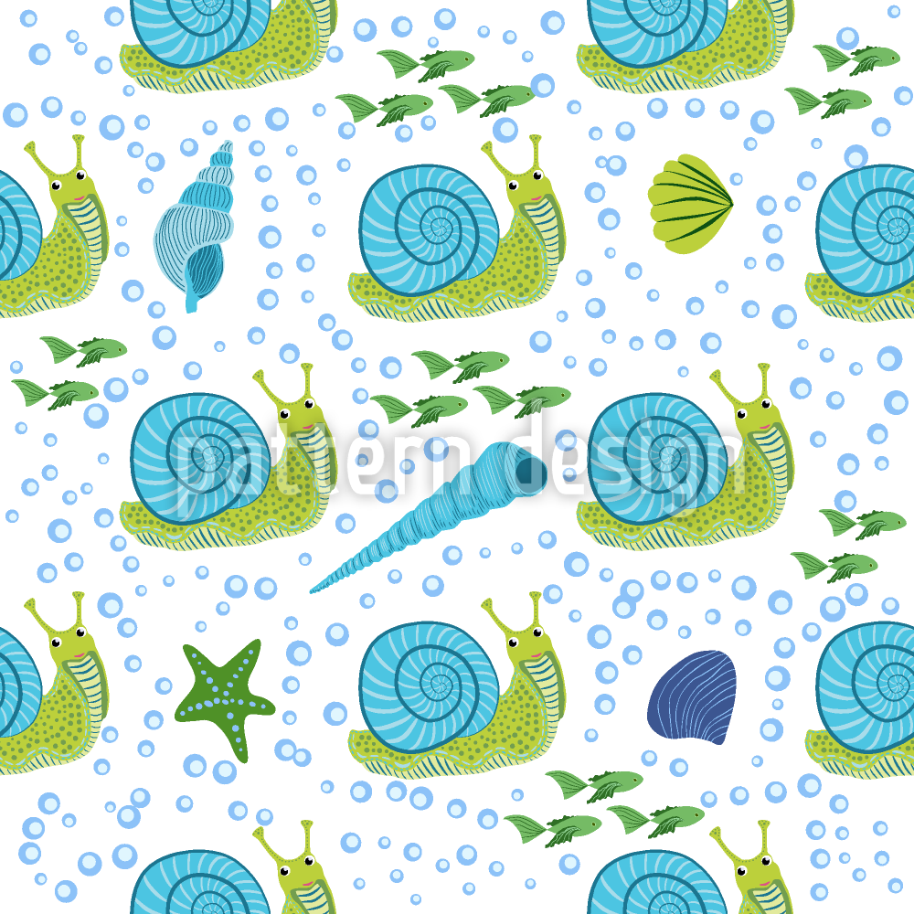 カタツムリと海の動物 シームレスなベクトルパターン設計