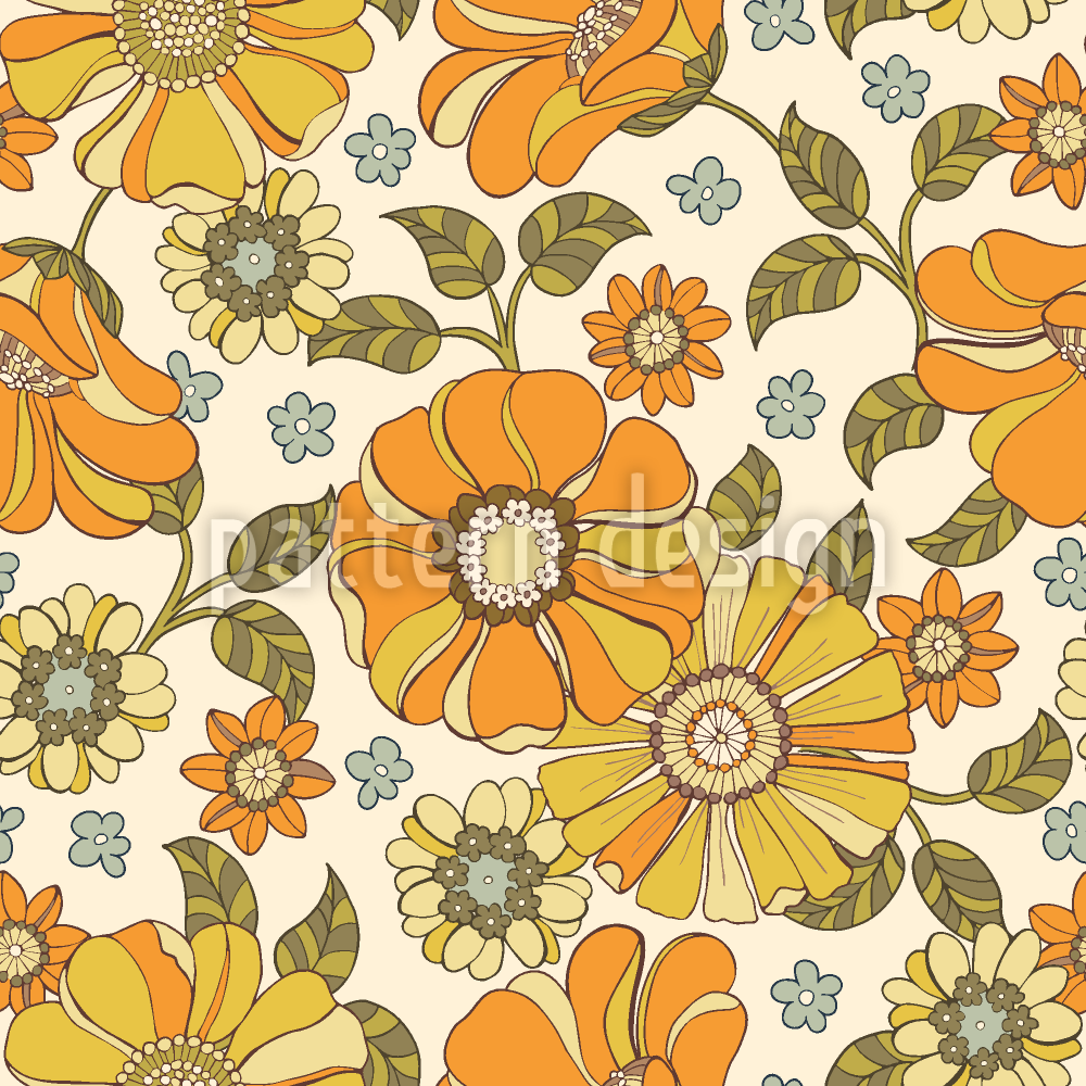 レトロ・ブルームズ シームレスなベクトルパターン設計