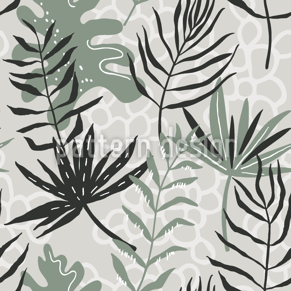 モノクロの抽象葉 シームレスなベクトルパターン設計