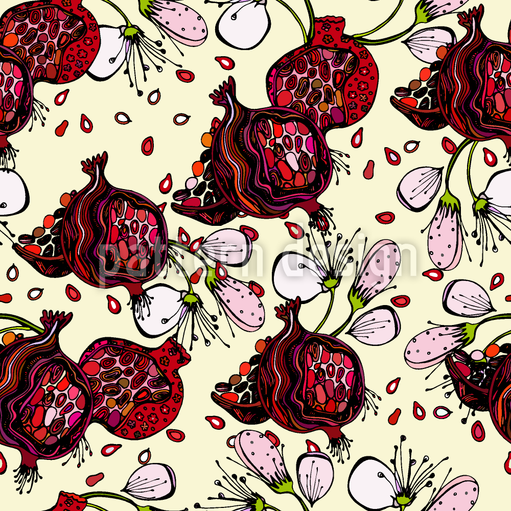ザクロと花 シームレスなベクトルパターン設計