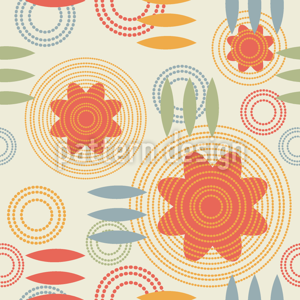 | 説明 | 定型化された花、点線と破線の円、スクラッチマークのように見える楕円形のシームレスなベクターパターン。 | ||
