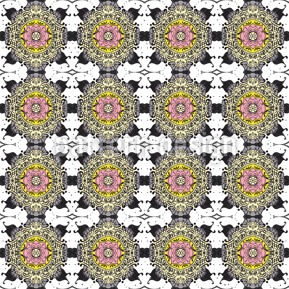 花柄マンダラスケッチ シームレスなベクトルパターン設計