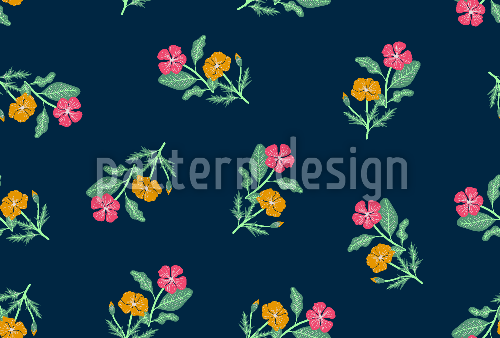 ペリウィンクルとポピー シームレスなベクトルパターン設計